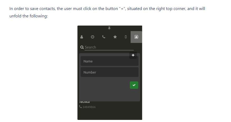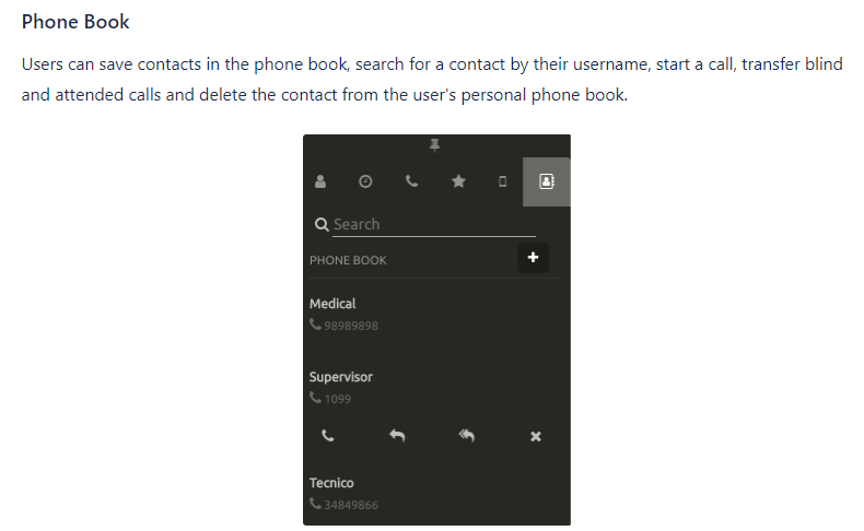 The user can interact with the contact on many ways, such as start a call, add to the favourite section and transfer an attended or blind call.