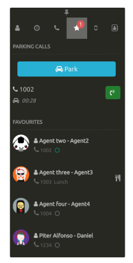 When the agent has an active call and presses Parking, the receiver will be put on hold and the agent will be without an active call to make others. When you want to return to the call, press the green phone button. Another way to return to the call is to dial the list number, which is displayed to the right of the number, in the case of the previous example would be 701.