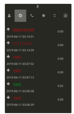 Allows to see the call log of the current session of the agent, if the call was incoming or outgoing, the called phone and the talked time.
