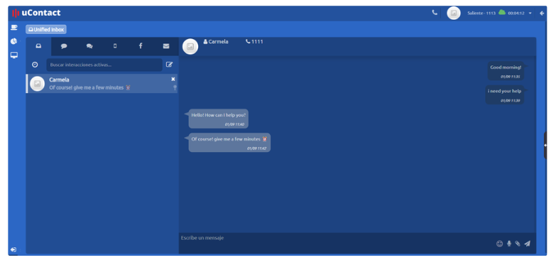 The chat is located in the tab Unified Inbox, which contains other communication channels.
