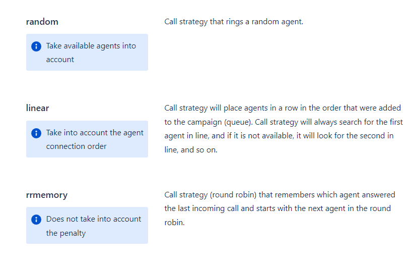 These types of strategies are determined by the agent's status at the time the call is delivered.
