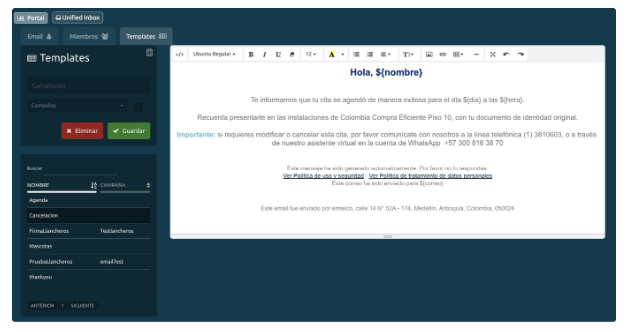 Se adjudicará un template ya creado en la sección Templates de campañas de Email. -