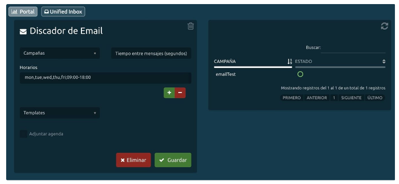 Campañas: Se listaran todas las campañas de email y así asociar una de ellas a la campaña a configurar.