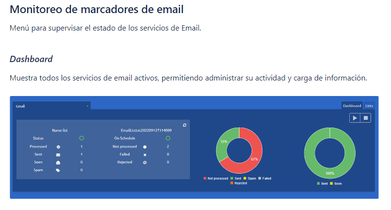Aquí se podrán ver las estadísticas en tiempo real de las campañas de Email.