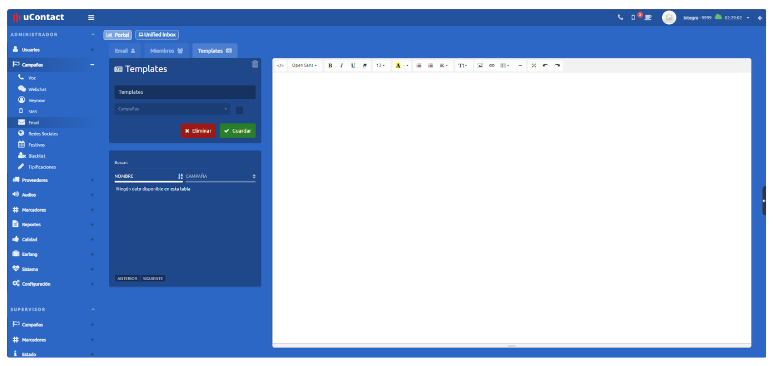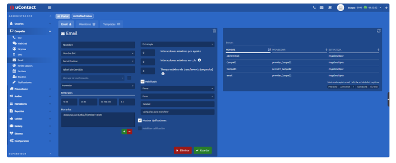 Para poder gestionar la configuración de las campañas de email en uContact es necesario contar con un usuario con permisos de administración en el sistema.