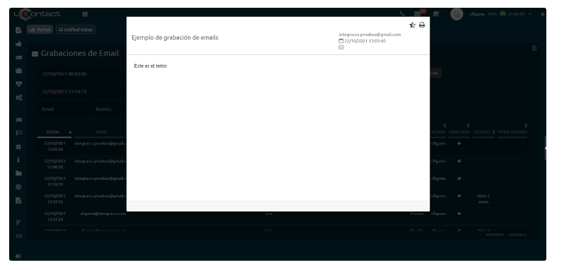 El supervisor podrá visualizar en tiempo real los emails intercambiados entre el agente y el cliente. -