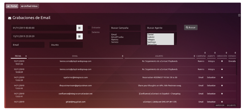 Con esta herramienta, los usuarios de uContact pueden recibir y enviar emails utilizando la plataforma. Unificando y facilitando las interacciones.