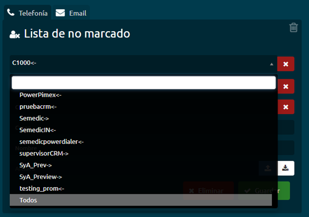 - Dejar el numero bloqueado en todas las campañas deberá seleccionar la última opción del drop list y seleccionar TODOS. Dar click en guardar para finalizar la acción.