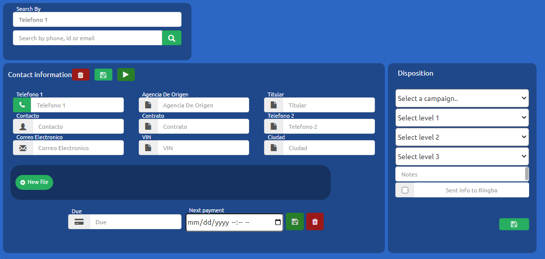 Formulario dinamico cuyos campos pueden ser personalziados segun las necesidades de cada empresa, incluye tambien un módulo de tipificaciónes (o fines de gestión) que permite generar un análisis de los tipos de llamadas mas frecuentes y resultado.