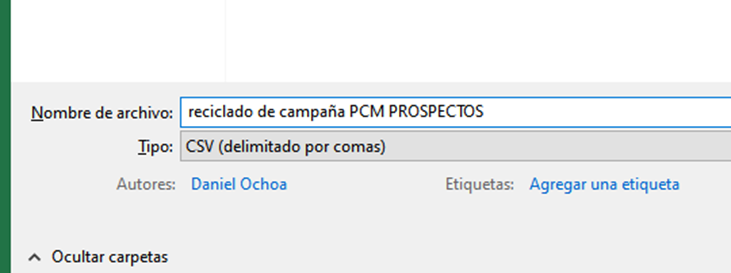 Por ultimo guardamos el archivo en CSV, delimitado por comas (Archivo-Guardar como):
