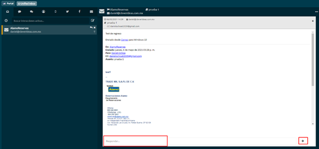 Cuando damos click sobre el botón responder automáticamente el sistema le responde a todos los involucrados en el correo, es como dar click en “responder a todos”.