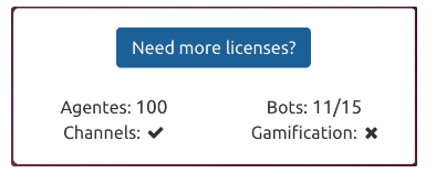 Un contact center puede tener habilitados, además de las licencias del portal, licencias para gamification y/o channels, las mismas hacen referencia a la parte de juegos del portal y a la parte multicanal (Webchat, Redes Sociales, Email y SMS).