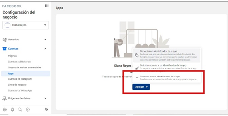 Si no aparece la tercera opción de Crear un nuevo identificador de la app, necesitas crear una app nueva desde Facebook para Developers.