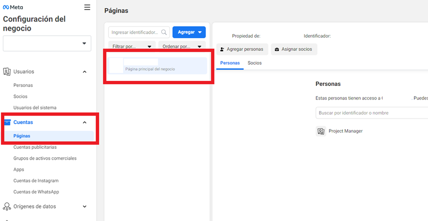 Dirígete a Páginas y comprueba que tu fanpage principal está correctamente relacionada.